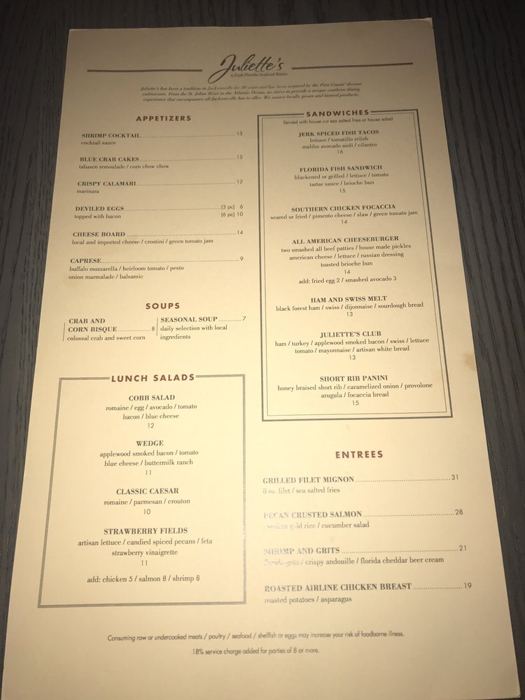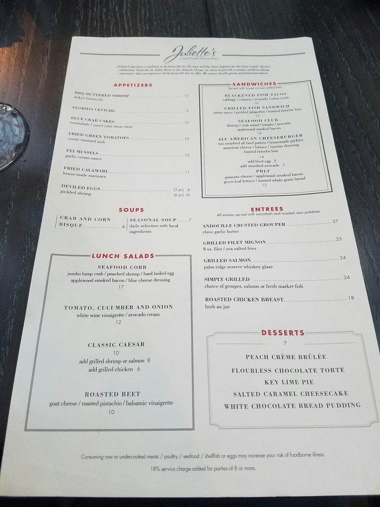 Welcome to Juliette's Bistro, a culinary gem located in the heart of Jacksonville, FL, at 245 Water St. This inviting eatery specializes in American breakfast and brunch with a delightful seafood twist. Guests can indulge in a variety of mouthwatering dishes, from the hearty All American Slam to the flavorful shrimp cocktail.