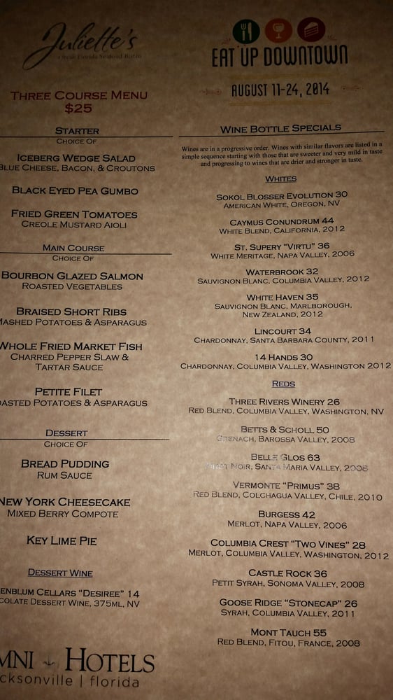 Juliette's Bistro stands out with its atmosphere—classy yet relaxed, perfect for groups. Their numerous vegetarian offerings, outdoor seating, and catering services make it a versatile choice for any occasion. Plus, the full bar and happy hour specials elevate your dining experience. Join us for a memorable meal!